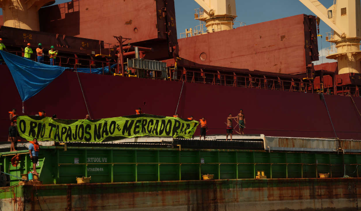 Indígenas ocupam balsa de soja no rio Tapajós contra privatização de hidrovias